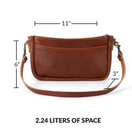 • Shoulder strap with 14" drop, made with 10oz full-grain leather.